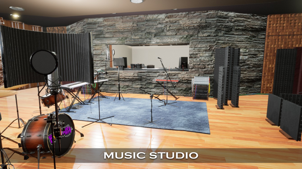 The Virtual Recording Studio 3D Environment transforms Zoom meetings into immersive, music-driven experiences. Clients appear inside a professional studio featuring mixing boards, acoustic panels, LED lighting, and customizable branded screens. Audio tracks, videos, and visuals are seamlessly integrated into the environment, allowing for real-time playback and dynamic presentations. Live producers handle camera angles, transitions, and media cues, ensuring a smooth, broadcast-quality experience without technical complexity. Ideal for music showcases, artist sessions, label meetings, and creative collaborations, this environment delivers a polished, engaging atmosphere that captures the energy of a real studio while elevating virtual communication and brand presence.