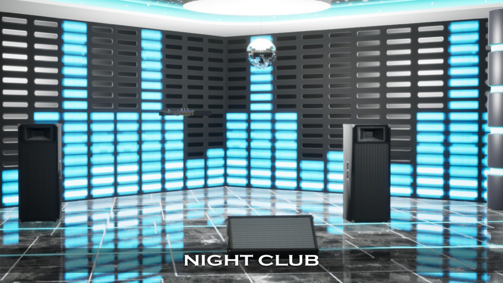 The Virtual Nightclub 3D Environment transforms Zoom meetings into high-energy, immersive experiences. Clients appear inside a vibrant club featuring dynamic lighting, LED walls, a DJ booth, and customizable branded visuals. Music, videos, and graphics are seamlessly integrated into the environment, creating a live event atmosphere. Real-time production controls manage camera angles, lighting effects, and media transitions, delivering a smooth, broadcast-quality experience without technical complexity. Ideal for virtual parties, brand activations, product launches, and entertainment events, this environment energizes audiences, enhances engagement, and delivers a visually striking setting that turns any meeting into an unforgettable digital nightlife experience.